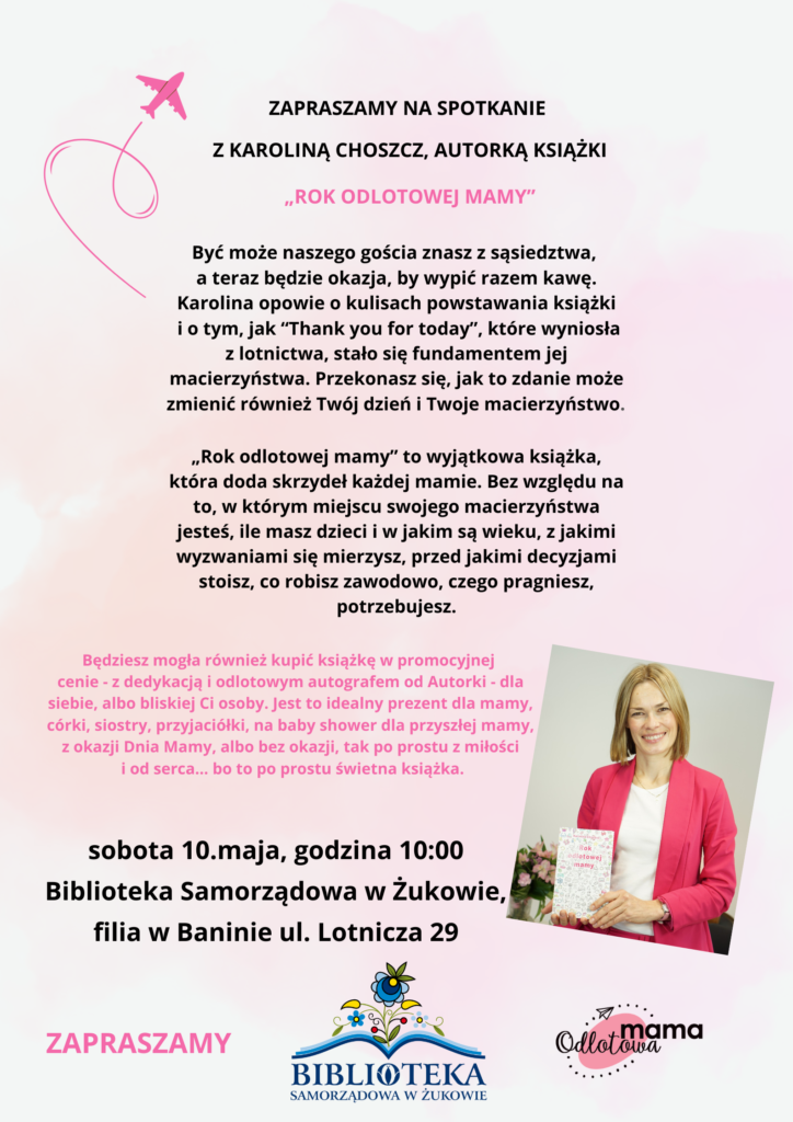 Zapraszamy Was na spotkanie z Karoliną Choszcz, znaną także jako „Odlotowa mama”.