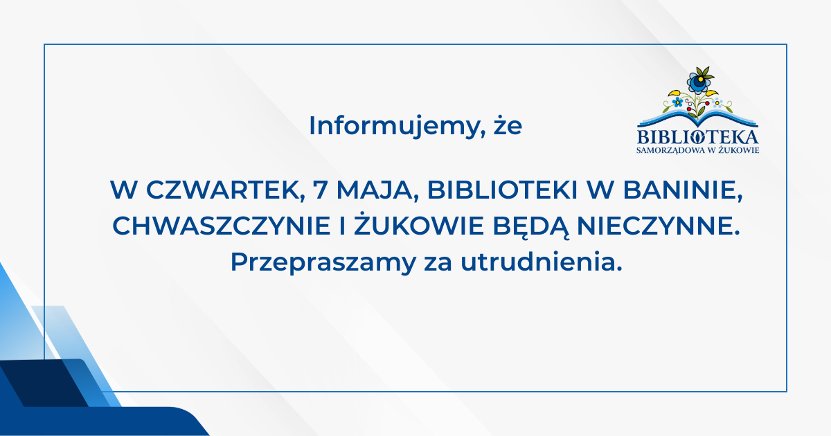 Serdecznie witam Państwa na stronie Biblioteki Samorządowej w Żukowie. Jesteśmy instytucją kultury finansowaną przez Gminę Żukowo. Posiadamy pięć bibliotecznych znajdujących się na terenie największych wsi w gminie Żukowo. Naszym najważniejszym zadaniem jest gromadzenie, opracowywanie, przechowywanie i ochrona materiałów bibliotecznych oraz udostępnianie książek.