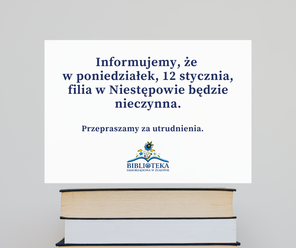 w poniedziałek, 12 stycznia, filia w Niestępowie będzie nieczynna.