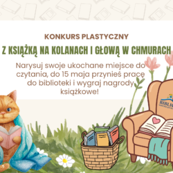 Dziś, 23 kwietnia, obchodzimy Światowy Dzień Książki i Praw Autorskich, a my ruszamy z wyzwaniem dla najmłodszych i tych nieco starszych czytelników. Z radością ogłaszamy start konkursu plastycznego: „Z książką na kolanach i głową w chmurach”! ☁️ Gdzie czyta Wam się najlepiej? W tajnej bazie pod kuchennym stołem, na gałęzi ulubionego drzewa, a może w Read more about Konkurs: Z książką na kolanach i głową w chmurach[…]