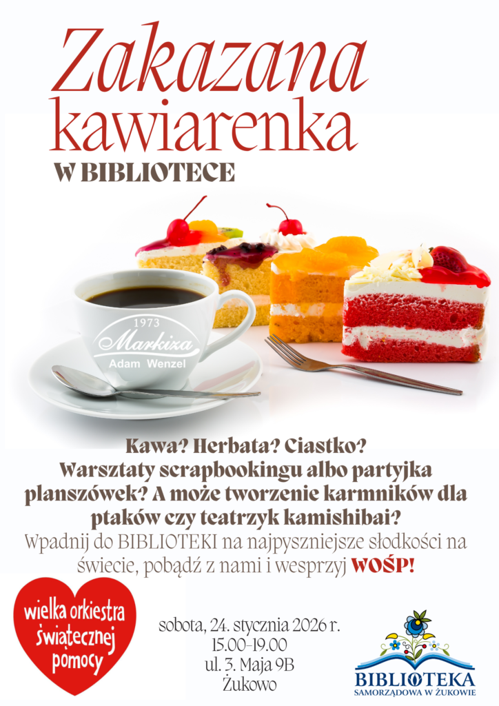 Jak co roku, dzień przed Finałem WOŚP, nasza biblioteka zamienia się w najsłodsze miejsce w Żukowie, czyli w… „Zakazaną Kawiarenkę”!