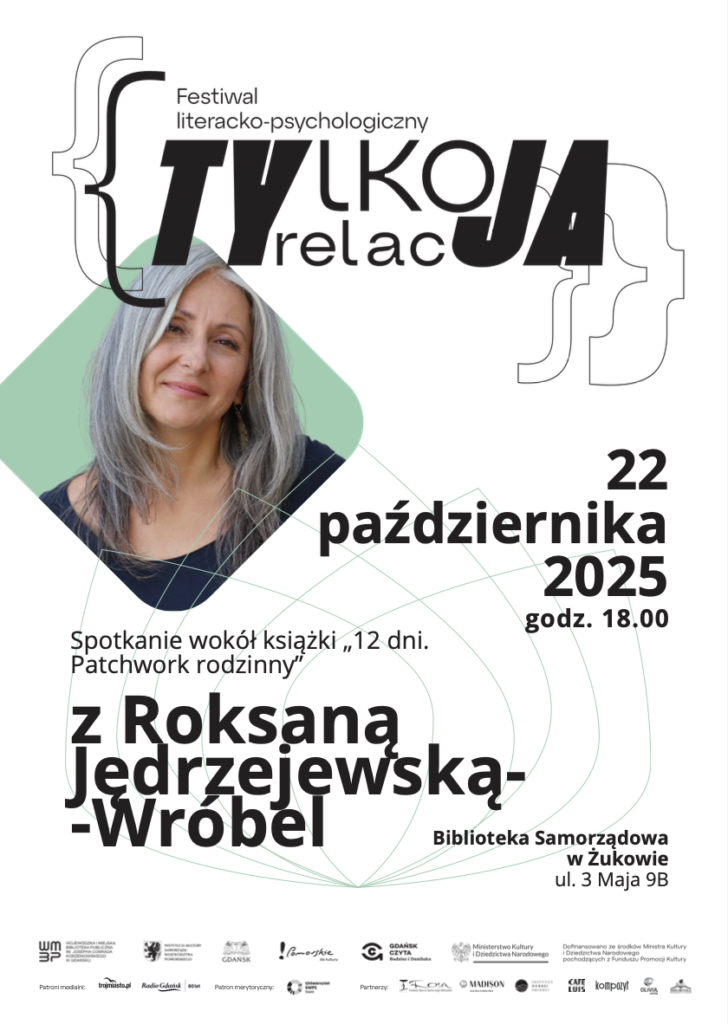 Biblioteka Samorządowa w Żukowie we współpracy z Wojewódzką i Miejską Biblioteką Publiczną w Gdańsku serdecznie zaprasza na niezwykłe spotkanie w ramach festiwalu literacko-psychologicznego TYlko relacJA.