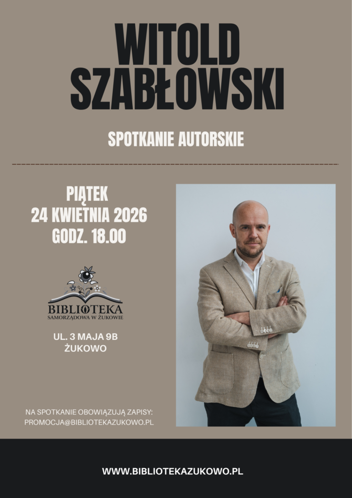 Na spotkanie obowiązują zapisy: PROMOCJA@BIBLIOTEKAZUKOWO.PL